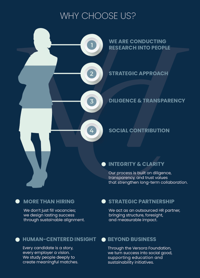 Through the Versora Foundation, we also channel part of our success into social impact, supporting education and sustainability initiatives, because every placement can change a life.